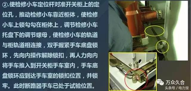 2、將斷路器從檢修車推到開關柜手車室內操作