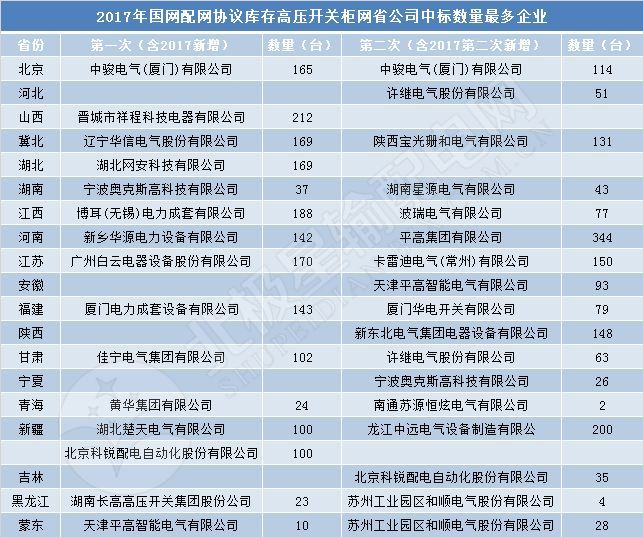 說到投標情況,怎么會沒有中標的情況呢?接下來,邊肖將讓大家了解2017年全國配電網設備協議庫存開關柜設備的中標情況。